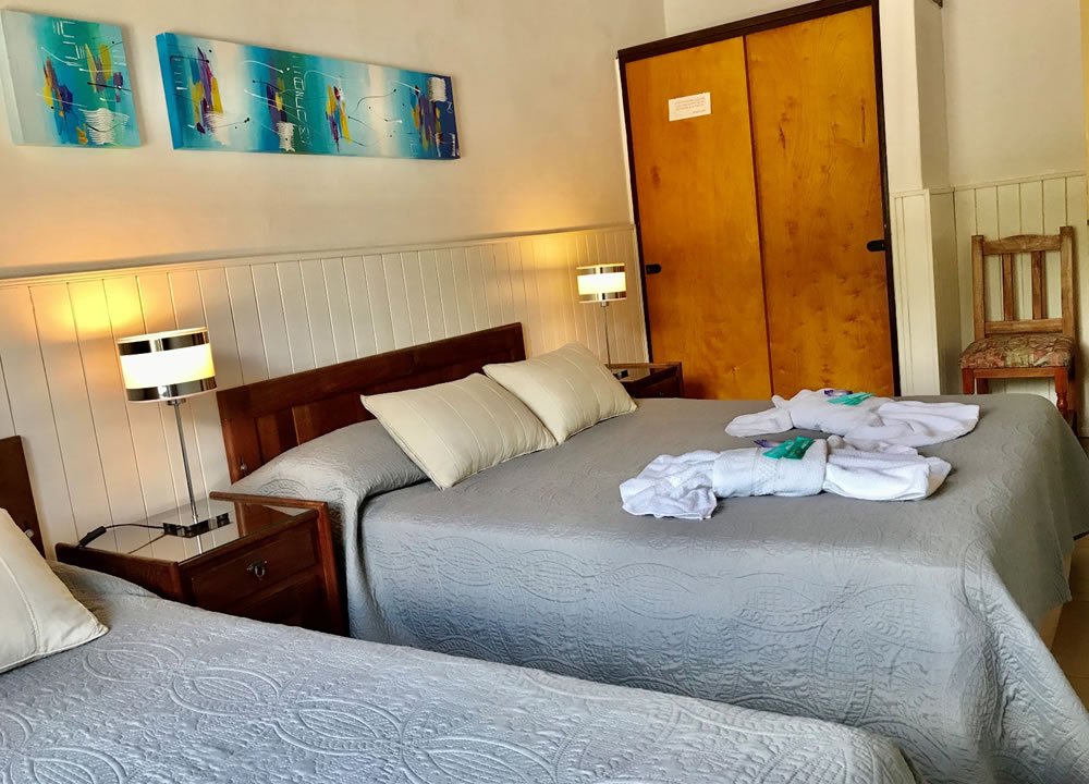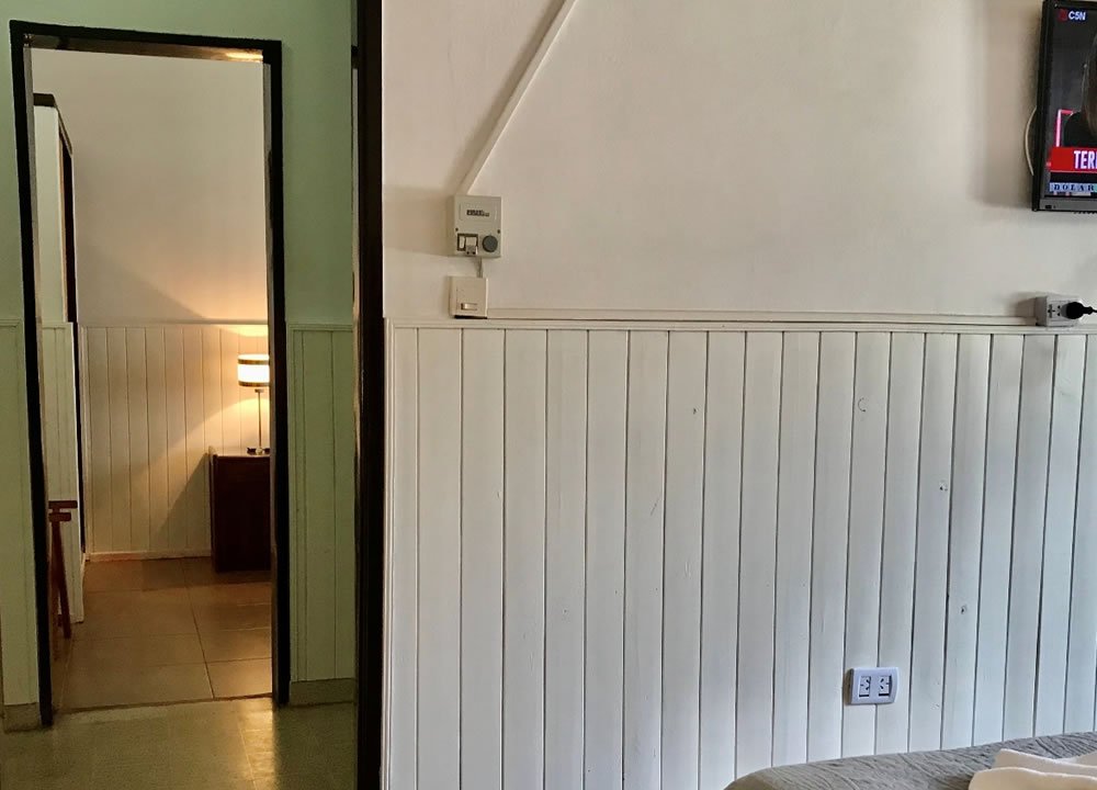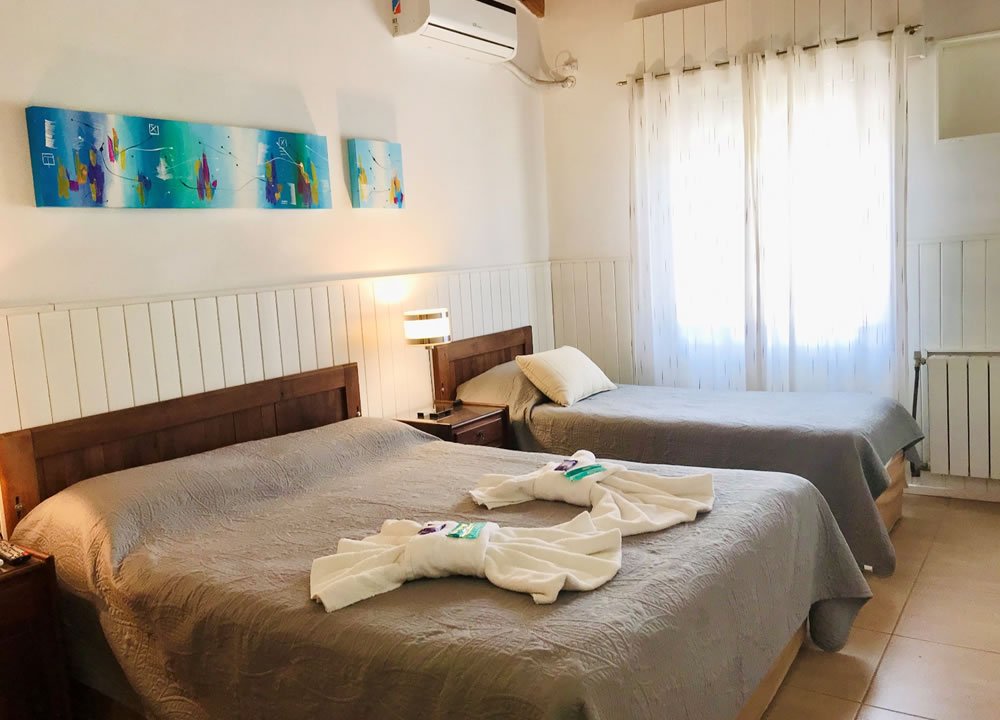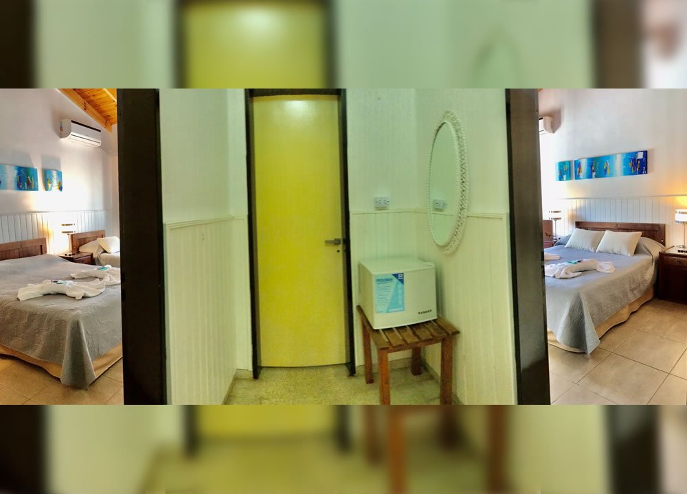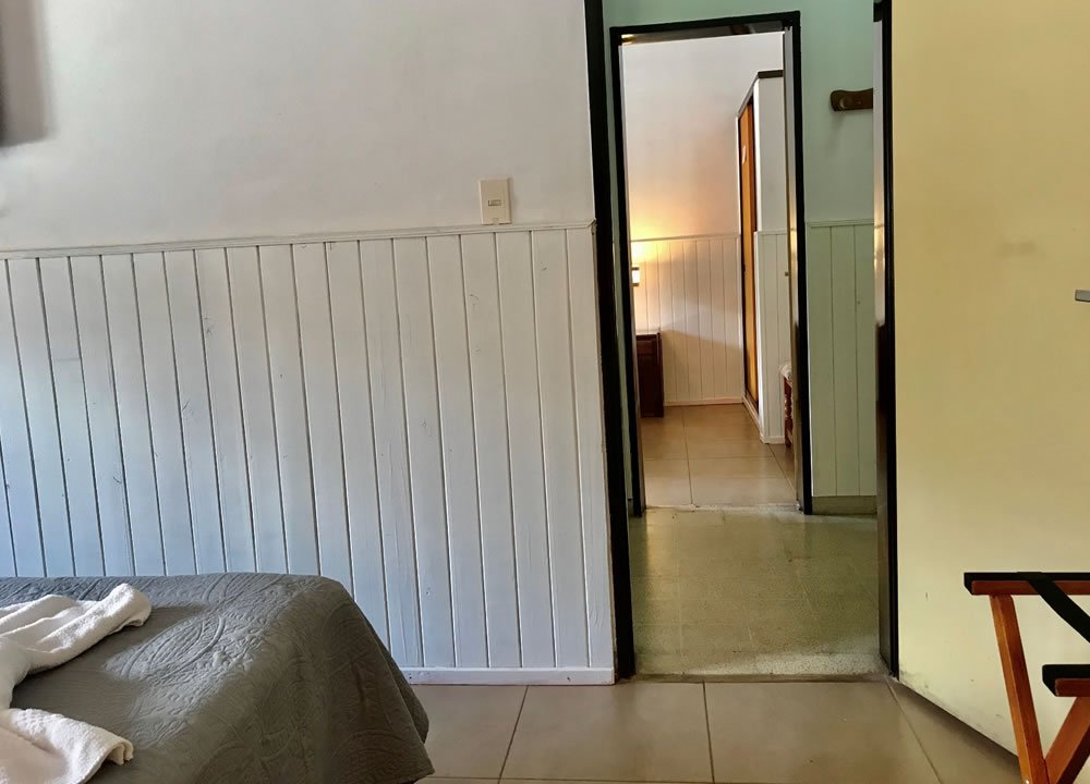 Habitación dúplex (2 habitaciones triples unidas por un hall de entrada con un baño privado) con capacidad para 4, 5 o 6 personas. 1 cama individual y una cama doble grande en cada dormitorio. Unidad en planta baja.